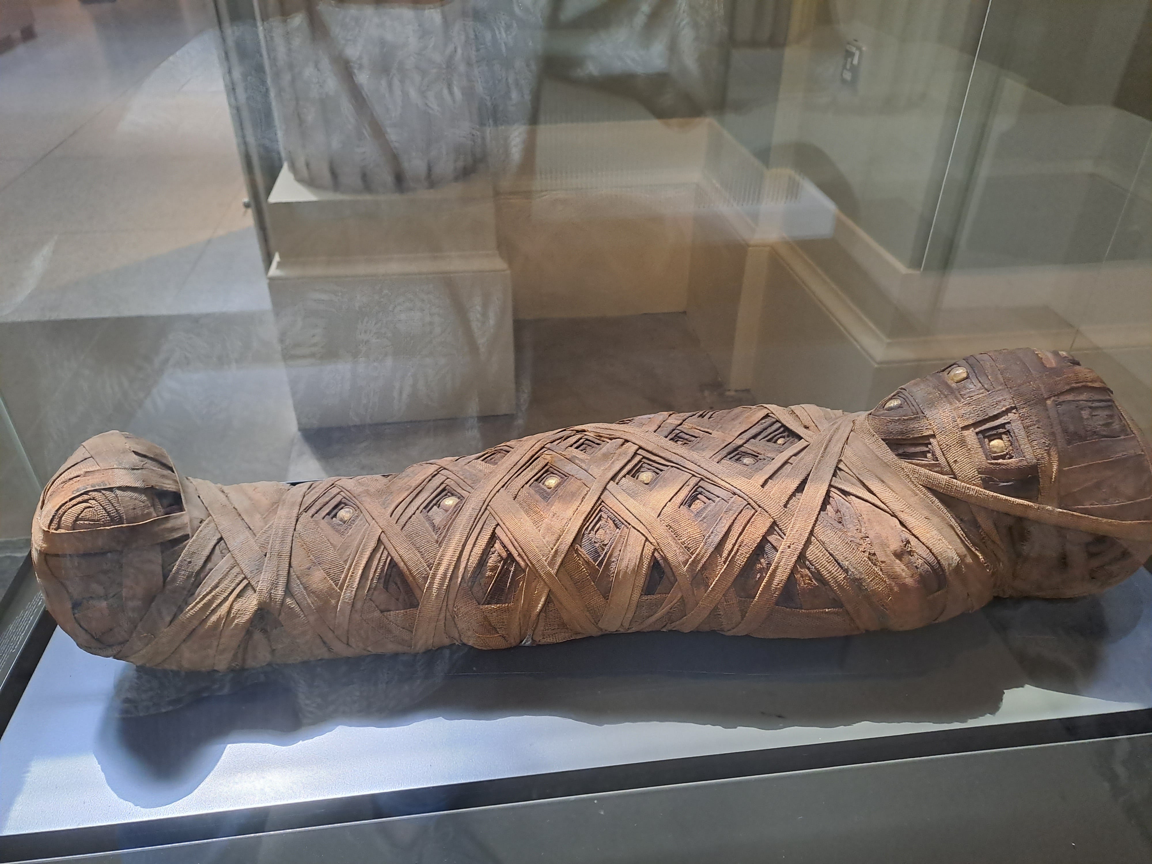 We would all bunch together at the feet end of the Mummy, gazing in awe, mouths wide open, at the couple of knobbly, skeletal toes that stuck out of the numerous layers of fragile fabric that the Mummy was wrapped in tightly, like the newborns I saw in the hospital nursery when many years back my youngest sister was born and I was taken to visit my mother and the baby. The ‘sticking-out toes’ were a clear indication to us that there really was a dead human in there. How old could it be? Was it a man or a woman, a girl or a boy? The plaque by the side indicated it being more than 2500 years old. In our young minds, this number only meant it was alive and walking about ‘once upon a time, many centuries ago …’ No fairy tale could have been more engrossing!